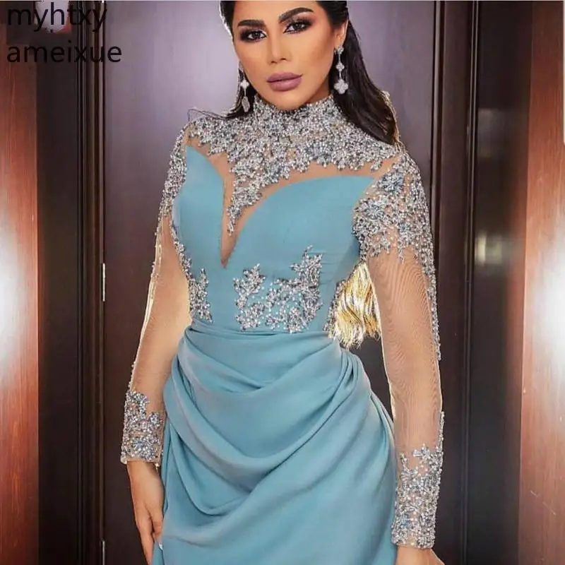 New Discount available for 2020 New Arrival Long Sleeve Evening Dresses 2020 Hand Beaded Robe De Soiree Musulman Evening Dress Party Gowns Arabic Plus Size.